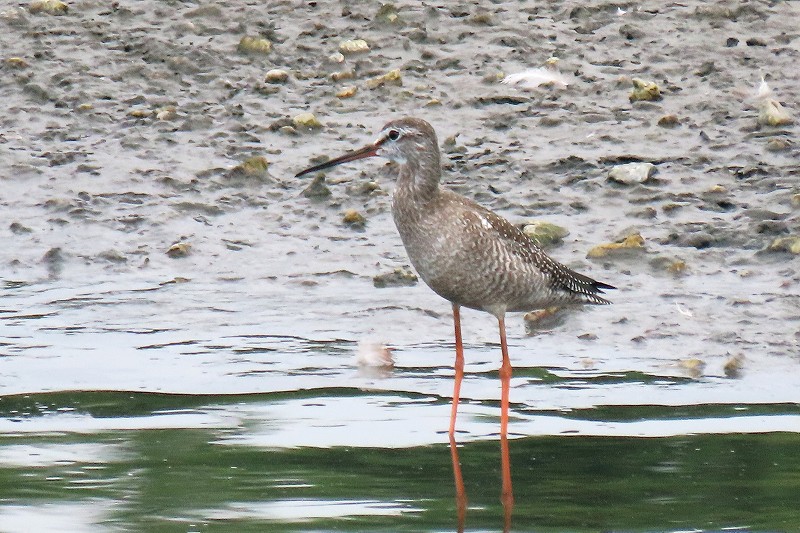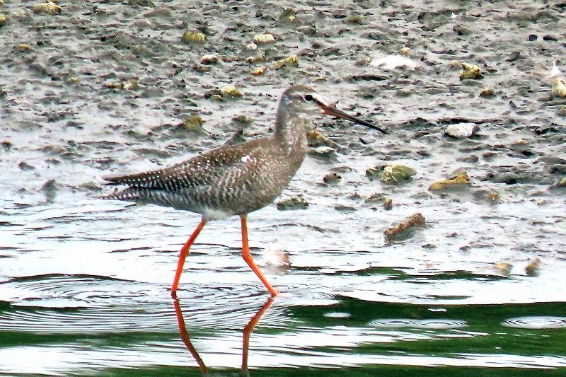 入り江や海に近い水田、湖沼などの湿地に飛来、ハトよりやや小さく赤く長い足。