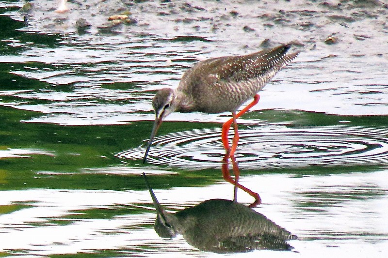 水の抜かれた溜池で、左のアオアシシギと一緒に餌探しをしていた。